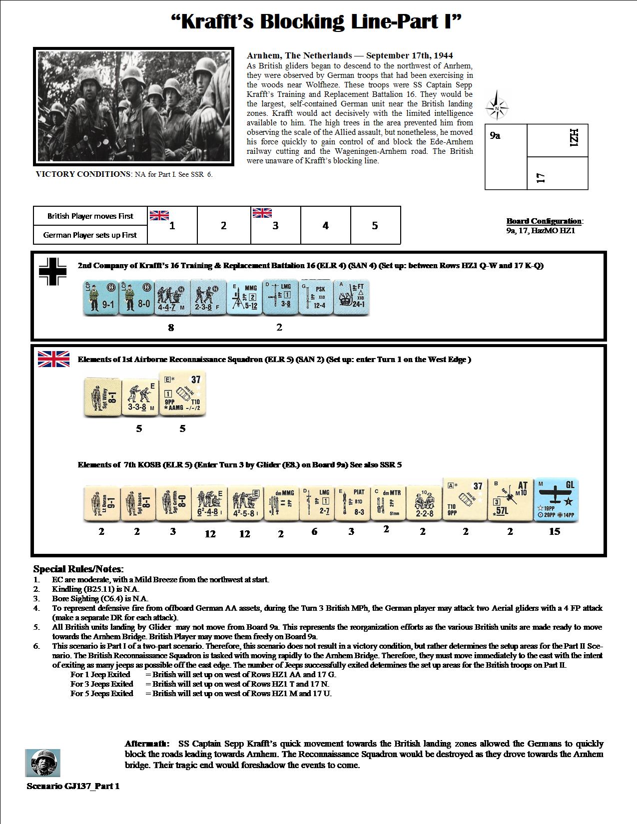 Part I-As British gliders began to descend to the northwest of Arnhem, they were observed by German troops that had been exercising in the woods near Wolfheze. These troops were SS Captain Sepp Krafft’s Training and Replacement Battalion 16. They would be the largest, self-contained German unit near the British landing zones. Krafft would act decisively with the limited intelligence available to him. The high trees in the area prevented him from observing the scale of the Allied assault, but nonetheless, he moved his force quickly to gain control of and block the Ede-Arnhem railway cutting and the Wageningen-Arnhem road. The British were unaware of Krafft’s blocking line.Attacker: British (1st Airborne Reconnaissance Squadron and 7th KOSB)