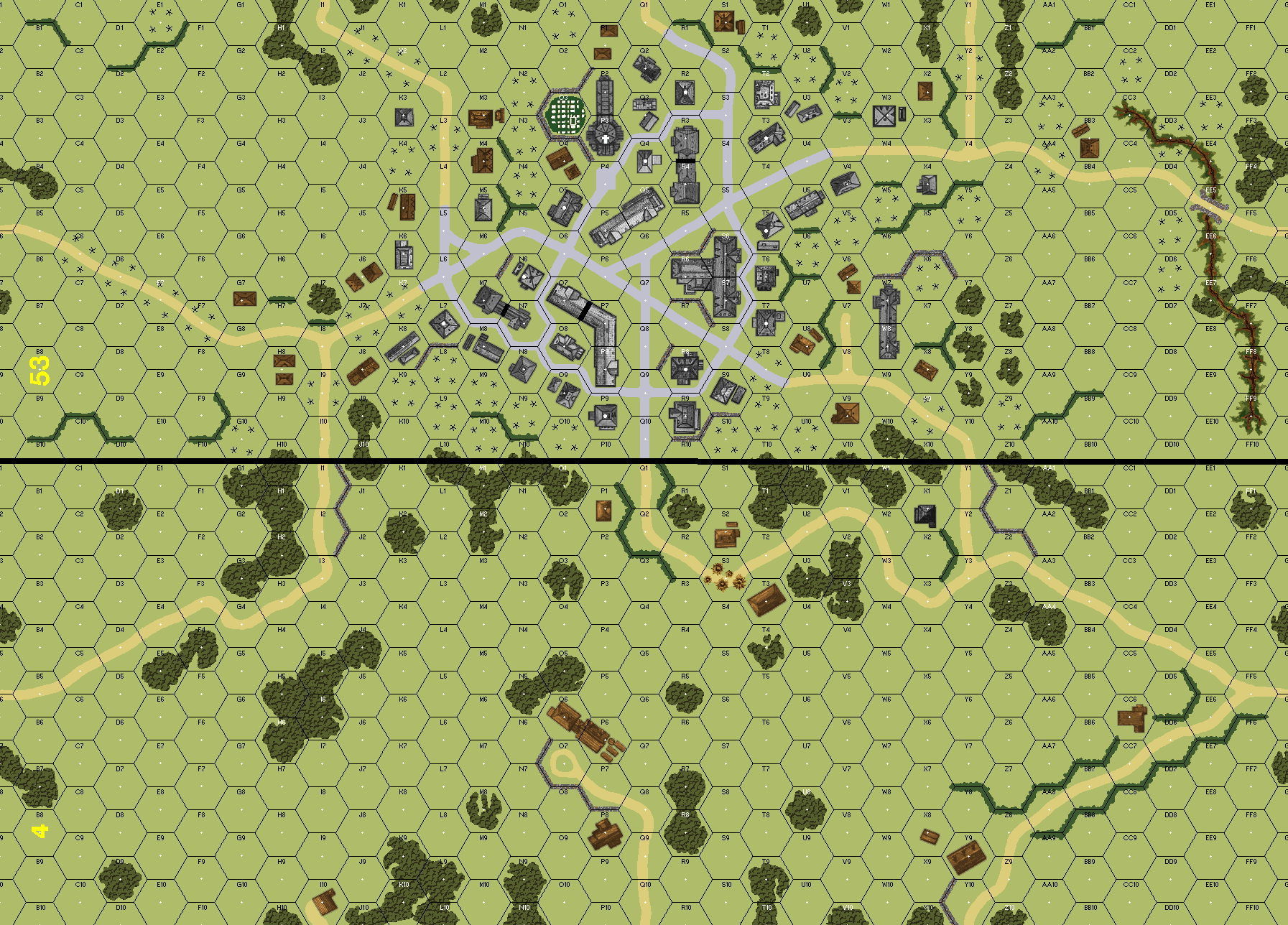 | 2026-02-06 | (D) Paul Legg | vs | Chip Wertenberger | Allied (British/American) win (VASL Log) | Friday Night Fight In my setup I tried a bit of subterfuge by not HIPing the ATG to make it look like there were three dummy vehicles making it look like I only had 1 dummy infantry stack. Also the two 8-0 leaders setup forward with a squad each to look like mg positions. The PzIV in 53L3 was boresighted on 53E9, the mmg in 53M5 on 53L10, 50mm mortar in 53X7 on 4GG1 and the ATG in 53DD5 on 4DD6. Chip's troops entered mainly on turn 1 with the M10s entering individually with riders on turns 1, 2 & 3 on a broadish front through the centre. I conceded in German turn 5 when an important stack fell to allied defensive fire leaving too few defenders to prevent an overrun in the allied's final 2 turns. | ||