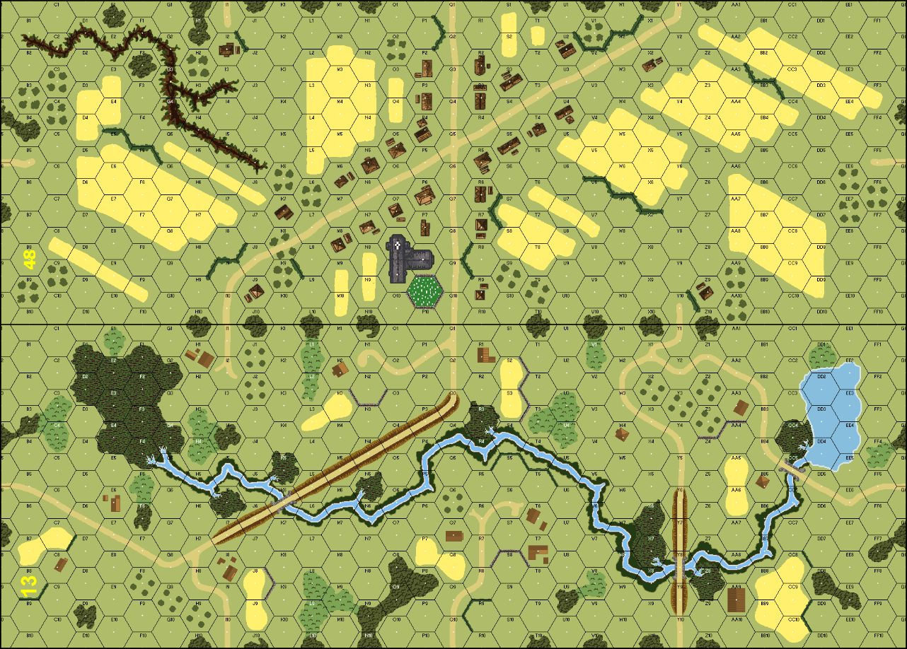 | Misc Rules: | Hedges: Bocage (B9.5). D: AFVs may set up HIP. 8-0 leader starts Wounded |