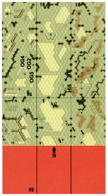 "Périers Ridge" - At Sword Beach, effective German resistance had been annihilated and the landing troops could begin to move inland. In front lay the only area of relative high ground in the vicinity: the Perier Ridges. These spurs—often called the Periers Ridges—were certainly not mountainous, but their two highest points were marked "Point 55" and "Point 61" on maps issued to Allied troops to indicate their height in meters above sea level. These ridges ran roughly northwest to southeast from Plumetot through Periers-sur-le-Dan to Beuville, and although the sides of both spurs were gentle, they provided excellent terrain with open vistas that seemed purpose-built for tank and anti-tank guns. Neither side realized it at that moment, but they were running to reach the summit.Attacker: German (Elements of 5th Company, Staff Company of Panzer Regiment 22)
