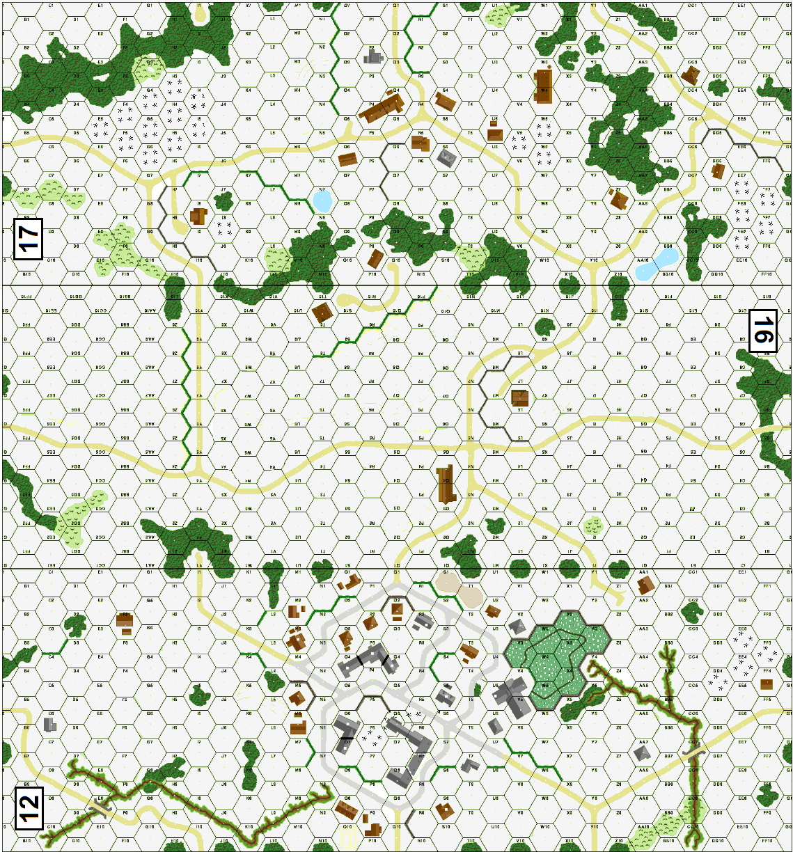 | Misc Rules: | GS, all buildings ground level w A: PzIVH have Schuerzen and D: AT Guns may Bore Sight |