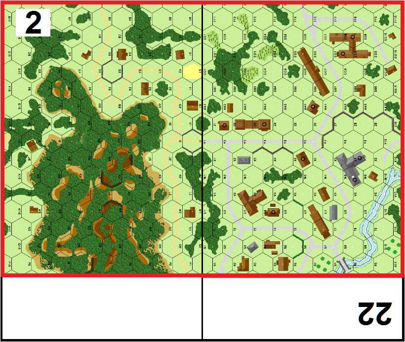 | Misc Rules: | All Hill hexes are Wooded; stream is Flooded. D: No PF capability |