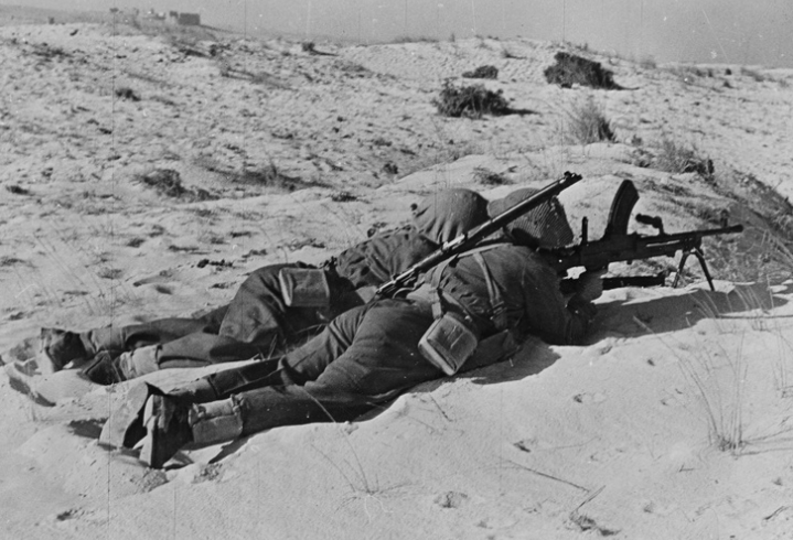 New Zealand troops in North Africa, take aim with a light BREN machine gun, 1942