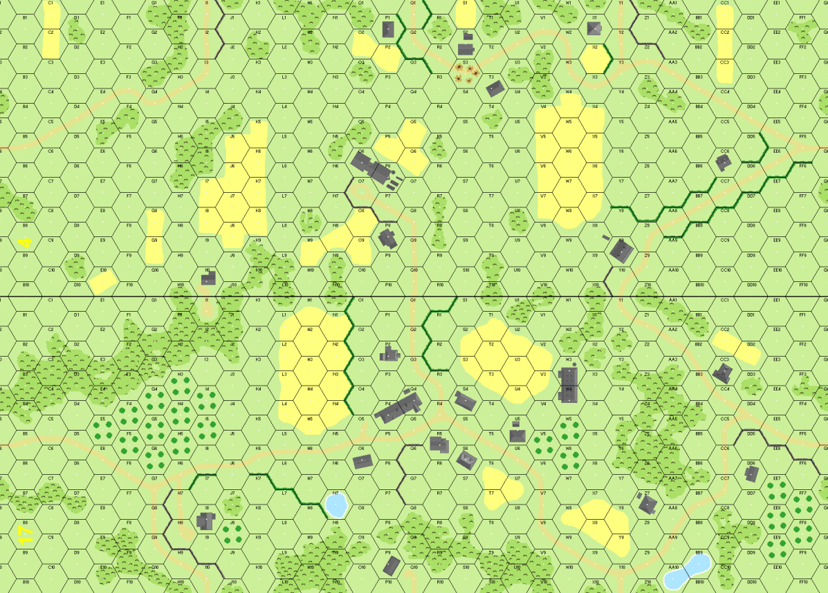 | Misc Rules: | Bldgs: Stone, Woods: Brush, Grain/Orchards: In in Season, Multi-hex bldgs: RT (B23.8) |