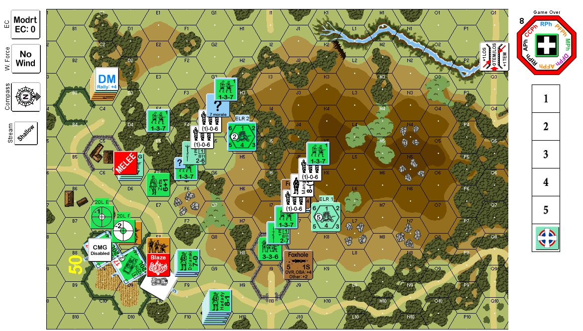 | Misc Rules: | A: AFV Mechanical Reliability, D: Variable OB for Partisans (poss 11 to 16 squads total). |