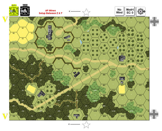 | Misc Rules: | Walls and Hedges: Bocage (B9.5). A: Elite (C8.2), D: Mines (B28) |