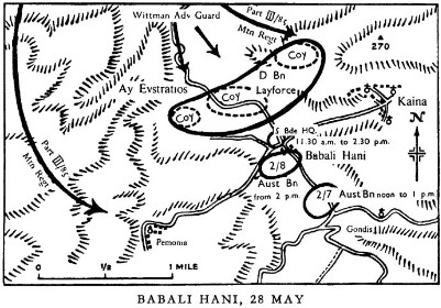 On Crete, once again the British forces had suffered defeat and were in retreat, streaming towards the beaches at Sfakia and evacuation by the Royal Navy. The pursuing German mountain troops were pressing hard, and had to be checked. The commandos of Layforce were ordered to stop and act as a rearguard, even though too lightly equipped to operate as regular infantry. They made a stand where the only road over the White Mountains passed through a narrow valley thickly covered in olive groves. They had been promised armor support but the Germans arrived first. .Attacker: German (Bataillon II, Gebirgsjäger Regiment 85)