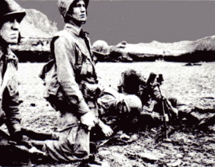 When darkness fell on 28 May, the bulk of the American troops on Attu were poised for the final assault on Chichagof Harbor, the last Japanese bastion. General Landrum, in command of the U.S. Army ground forces, had decided to finish off the costly campaign for the island the next morning. But sometime during the evening, Colonel Yamazaki also reached a momentous decision. Of the 2300 Japanese on Attu when the Americans invaded, only about 1000 were still able to fight. Faced with the obvious end for his isolated garrison, he ordered a counterattack. His men would break out of the pocket, with the aim of rushing through Clevesy Pass in the darkness and reaching the American artillery positions. There the Japanese would capture the massed howitzers and turn them on the enemy positions in Massacre Valley. At 0300 on the 29th, Yamazaki personally led his ragtag force, soon split into several waves by the broken ground, up the valley. The Japanese first fell upon Company B of the 32nd Regiment and Company L of the 17th Regiment; the sleeping Gls barely had time to awaken before they were swept away by the heretofore silent rush. The confused survivors fled in all directions. Next the Japanese overran an aid station at the mouth of the pass, slaughtering the medics and wounded. In the pass itself, alerted by the sporadic gunfire below, the divisional engineer battalion had hastily organized a thin defensive line in the dark. Cooks and drivers, officers and engineers, signalmen and quartermasters, grabbed any weapon handy and prepared to make their stand.Attacker: Japanese (43rd Independent Mixed Brigade)