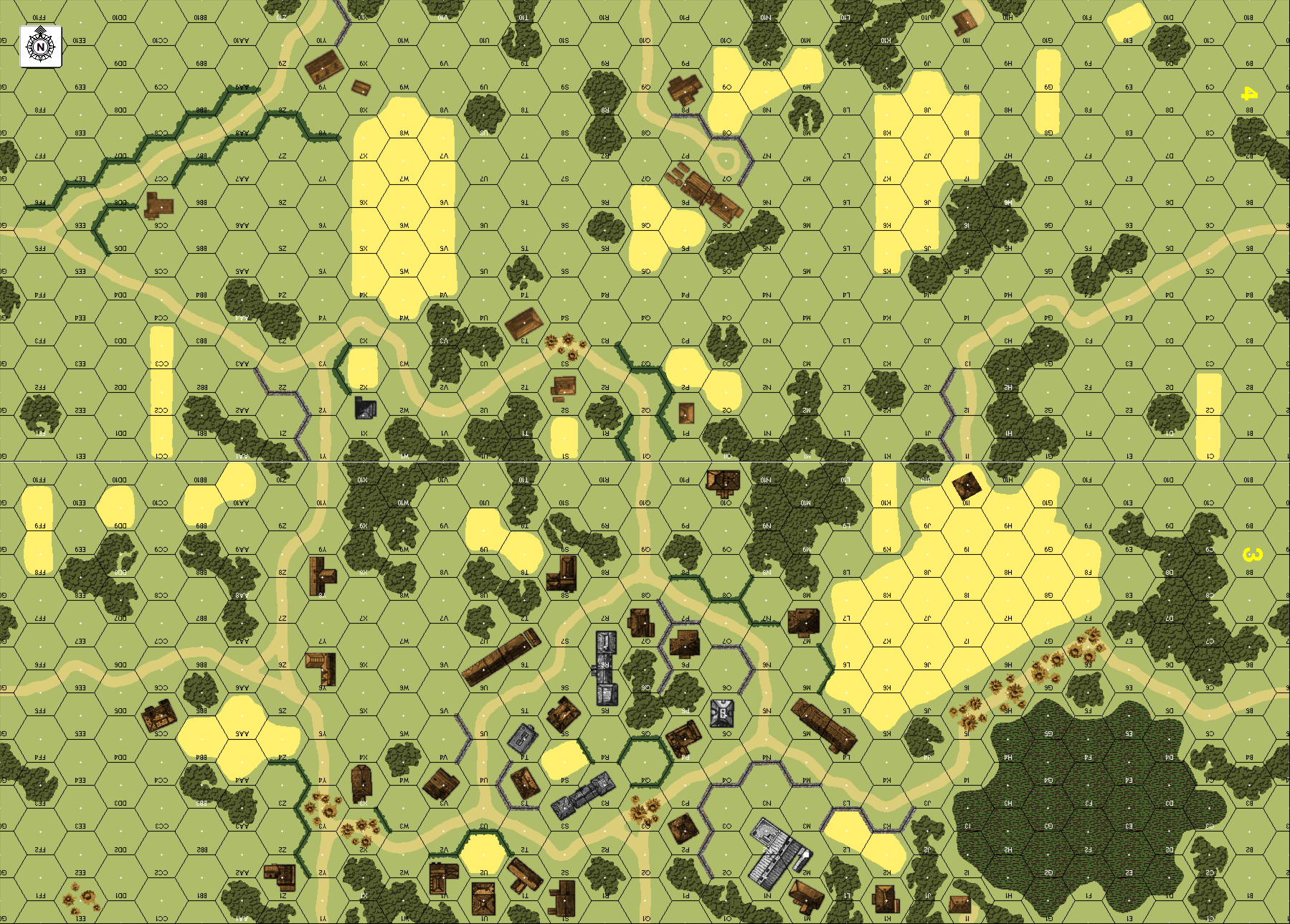 | Misc Rules: | Hills on Bd 3 are modified to Marsh, Grain and Level Ground |