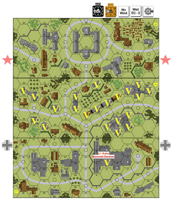 | Misc Rules: | Rowhouse on board b is completely Stone. A: Russian AFVs are Elite. |