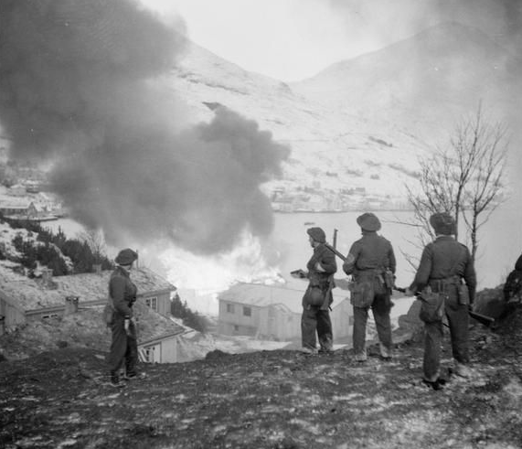 In October of 1941, Lord Louis Mountbatten took command of the Special Service Brigade. In accordance with a directive from Churchill, Mountbatten was to begin a “programme of raids in ever increasing intensity”. The first, a raid on the Lofoten Islands would be diversionary, covering the primary target of Vaagso Island. Arriving offshore, in the grey twilight of the scandinavian winter, the Commandos were divided into five groups for the assault. Group 1 would land south of Vaagso, moving inland to guard the southern flank of the direct seaborne assault of Group 2. At 0850 hours, the Commandos of Group 2 began their run-in to shore under a protective naval bombardment.Attacker: British (2, 3, and 6 Commandos)