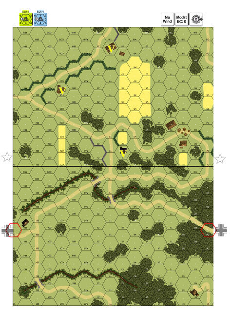 | The Amencans may use HIP for >= one squad-equivalent (and any SMC/SW stacked with it). Change the American Balance to "Each German unit has only half of its MF/MP in the German Tum 1 MPh.". | J11 |