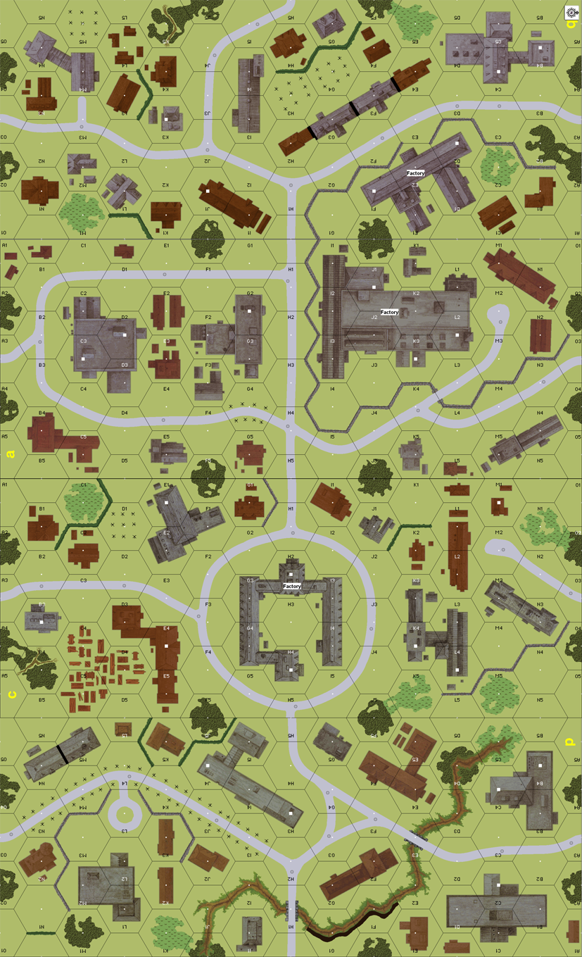 Malinovskii's forward detachments had encircled doomed Budapest. The German garrison, ordered by Hitler to defend the Hungarian capital to the last man, fortify the city for a siege. At the Ceramics Factory, well-armed and determined SS troops organized a circular defense.--- [Mark Nixon, Journal #1]: Loads of hitting power on both sides, room to move around yet plenty of difficult terrain, surrounded SS force outnumbered 2:1 by Russians driving five juggernauts straight at them and FT, DC, HIP and Machineguns galore.Attacker: Russian (30th Rifle Division/18th Guards Division)