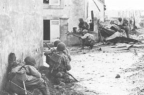 The Operation “Chastity” offensive was planned to gain control of the large harbors of Brest and Lorient whose facilities were needed to provide the logistical support the Allies would need to drive across France. General Ramcke and the 2nd Fallschirmjäger Division were primarily responsible for the defense of Brest. Ramcke formed a defensive line five miles from the center of the city. Loyal to the Führer, he directed the fallschirmjägers to hold the line to the last man. It was not until August 23rd, when three Infantry Divisions from the VIII Corps arrived, that the Americans had enough strength to actually begin the offensive. The small town of Plouzané was the first objective of the 175th Infantry Regiment of the 29th Infantry Division. They attacked Plouzané, held by fallschirmjägers and a marine unit from the Brest Naval Base.Attacker: American (2nd Batt., 175th Inf. Regiment, 29th Inf. Division)