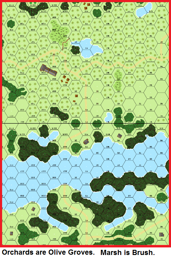 | Misc Rules: | Use of the IIFT recommended. Olive groves. Treat all Marsh as Brush. |