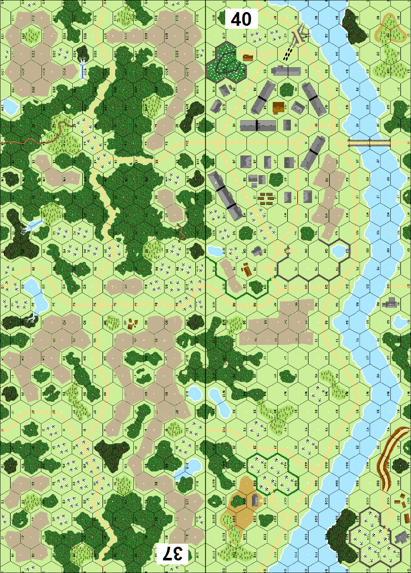 | Misc Rules: | Treat Grain as Mud hexes, Ov1, Stream is Deep. D: FB1, Pillbox3 |