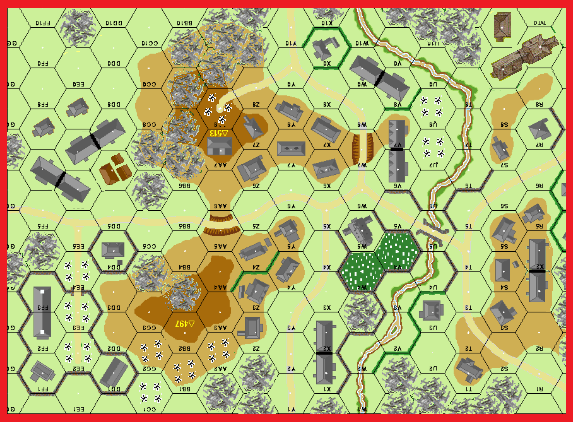 | Misc Rules: | Stone rubble added, Soft ground (+2 MF per hex), H-t-H both sides w A: German FB3 |