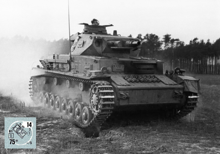 | AFVs: A:4 PzKpfw IIIF x 3 PzKpfw IVC |