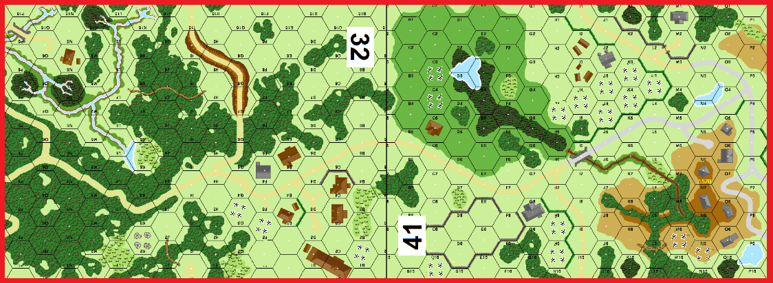 | Misc Rules: | EC Wet, AFVs pay +1 MP penalty per hexside (Exc: road). A: FTV (D3.6) |