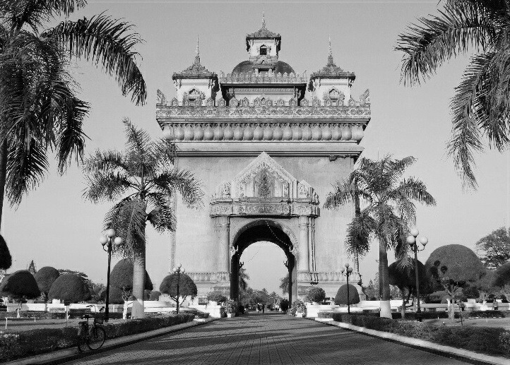 The Patuxai, Arc de Triomphe-inspired monument on the "Champs Elyees" in Vientiane, Laos