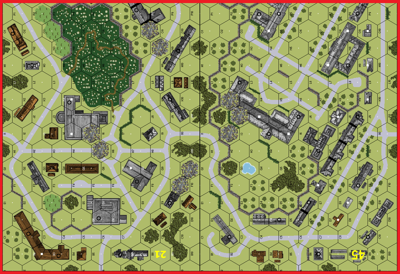 | Misc Rules: | All FAWSRs. Rubble. Bd 45 multi-hex buildings are Two Story Houses. D: 2 MMC HIP setup, MOL. |