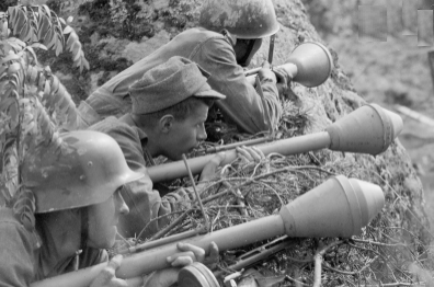 After repulsing a heavy Soviet attack the remaining troops at Wulkow fell back on their second defense line to regroup. Hearing the sounds of enemy tanks, three unknown Landsers volunteered to return to the old positions to ambush the oncoming enemy attack using panzerfausts. Groups of Red Army tanks were soon witnessed rolling out of a woods-line, heading straight for the former Germans lines. Without infantry support, the Russian behemoths clanked slowly forward, firing at fleeing German soldiers. As they came, they moved right into the sights of the hand-held anti-tank weapons of the three remaining forward defenders.Attacker: Russian (Elements 220th Tank Brigade; 416th Rifle Division)