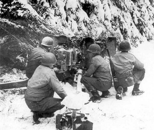 57mm AT gun in position … awaiting enemy armor, somewhere in the Ardennes Forest