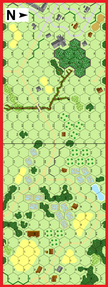 | Misc Rules: | ETO terrain but has Rice Paddies. All buildings are Single Story |