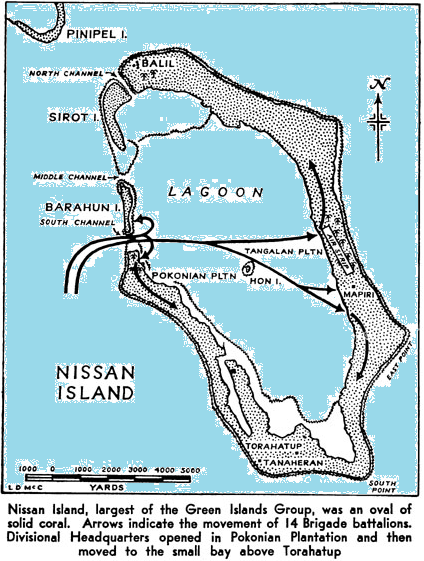 After establishing the beachhead on Bougainville, Admiral Halsey began looking at the next step needed to complete the occupation of the Northern Solomons Islands and the containment of the massive naval base at Rabul. At a conference in December 1943, General MacArthur suggested that the Green Islands Group be taken with the forces available. Admiral Halsey selected a brigade of the 3rd New Zealand Division as both the assault and occupation force in January. Although attacked by Japanese air units during the approach, an unopposed landing was made by the New Zealand forces and the 30th and 35th Battalions began a pincer move to flush out any Japanese garrison that may have occupied the island. Later that morning the New Zealanders were approaching the Mission at the south end of Nissan Island when they came under fire. An immediate attack was made on the Mission compound by both battalions, each approaching from a different direction.Attacker: New Zealand (30th and 35th N.Z. Battalions)