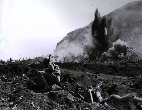 Through two hellish days of fighting, the 3rd and 4th Marine Divisions had secured a base of operations for their assault on the foreboding heights of Hill 383. This position dominated almost all operations on the island. The Japanese chosen this spot carefully and the surrounding area had been the focal point of Japanese fortification. The morning of the 28th was to be that day that, according to Marine planners, Hill 382 was to fall. It was not to be. 119 were buried in the burgeoning Marine graveyard at the base of Mt. Suribachi. As the Marines returned to a line near to the day's start point, the Japanese still dominated the second airstrip from the heights of Hill 382.Attacker: American (USMC) (Elements of the 3rd and 4th Marine Divisions)