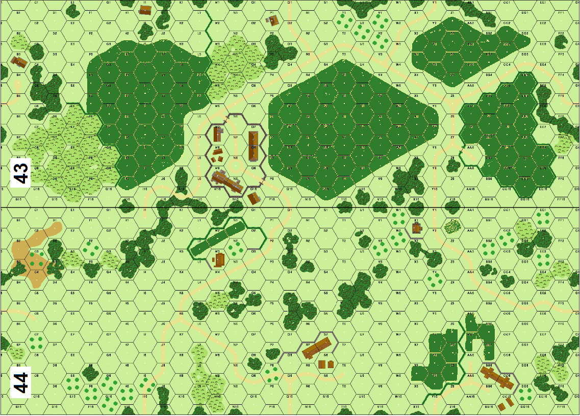 The 6th SS Mountain Division was a grand title for a unit made up of middle aged reservists. They were certainly not fit for the trials of fighting in such inhospitable terrain as found around the town of Salla in northern Russia. However, given the requirements of the Eastern Front, this unit was given an important responsibility in the attack on Salla. While the 169th Infantry Division assaulted the town directly, the SS attack from the south was stopped in its tracks by the Russian fortifications. On July 4th Corps headquarters staff personnel were astonished to see SS troops fleeing to the rear, claiming attacks by Russian tanks. . . .For those of you used to playing the German 6-5-8 SS Supermen this scenario will be a nice surprise. Not all of the German SS troops were the Ubermen of 6-5-8 fame. This scenario features 11 German SS squads trying to hold some buildings against 14 Russian squads supported by some tanks.Attacker: Russian (128th Rifle Corps)