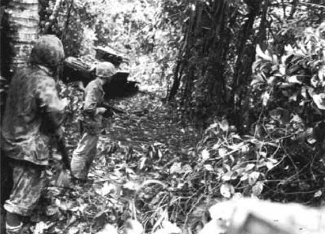 The jungle on Bougainville looked the same as the jungle on New Georgia, but for the Buckeyes of the 37th ID, the situation was quite different. Instead of occupying the whole island, Army troops seized just enough territory on which to establish airbases from which they could dominate the surrounding area on their road to Rabaul. By early 1944, the 37th ID and the Americal ID occupied a fortified perimeter around several airfields, but the Japanese were massing their forces for a counterattack to throw the Americans off the island. On February 14. the 145th Infantry sent a reinforced platoon of Buckeves and two platoons from the colorful Fiji Infantry Regiment into the jungle to collect intelligence on Japanese preparations. Six miles outside the perimeter, the patrol found what they were looking for. Fiji scouts found the Japanese first: the forward elements of the Magata Unit, one of the main Japanese counterattack groupings.Attacker: Japanese (Magata Unit)
