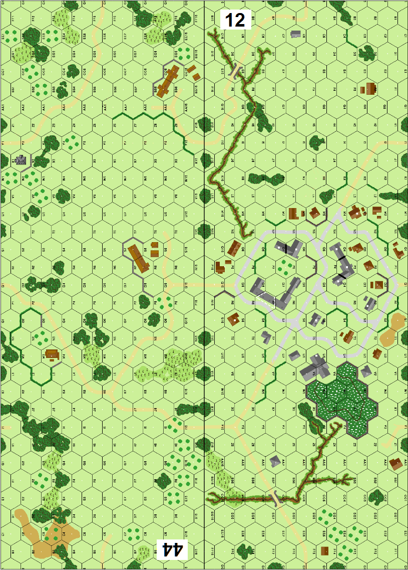 | Misc Rules: | Rowhouses are NA. Lvl 2 Steeple 12U5. Pre-game dr for rubble each bldg hex |