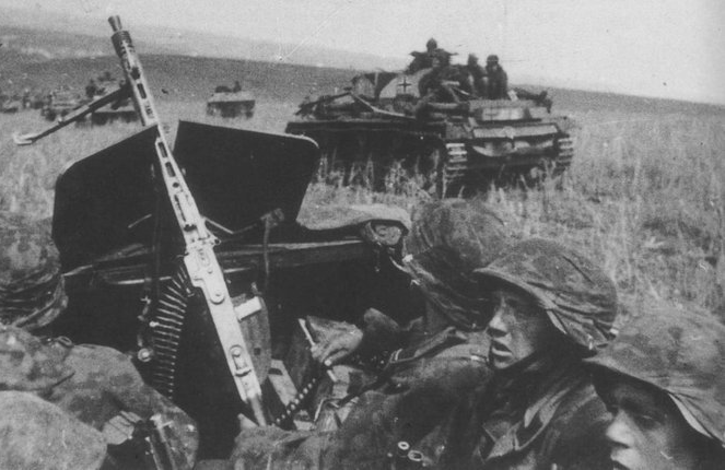 On the last day of Operation Citadel, the Das Reich was on the flank of the 1st SS. While the 2nd Panzer Regiment was acquiring its new Panther tanks in Germany, Das Reich had to make do with a number of captured Soviet T-34 tanks repainted in German colors and commanded by Emil Seibold with 69 kills to his credit. Meanwhile the 1st SS engaged the 5th Guards Army even as the Das Reich was attacked by the 2nd Guards Armored Division. A column of sixty Soviet tanks attacked along a hollow in an attempt to breach the lines of the Der Fuhrer Regiment. As the Soviets moved through the hollow, Seibold's T-34 appeared over the crest of a low range of hills on the Soviet flank. Believing that the approaching tanks were Soviet, the Russian commander continued his attack against the Der Fuhrer Regiment. . .Attacker: Russian (2nd Guards Army)