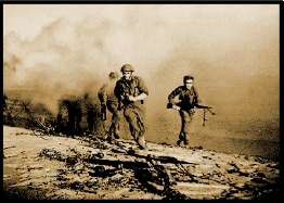 "Under a Sky of Lead" -- Early on the morning of the 21st, the 10th Company, under command of Captain Ternynch, had captured the village of Sollies-Ville. Advancing through the cover offered by a nearby olive grove, Captain Ternynch's men followed closely behind a heavy artillery barrage. The German defenders were particularly tenacious, however, and the 10th Company had suffered heavy losses in furious close combat. Captain Ternynch had been wounded in the hand but stayed behind to continue the fight. Without wating for replacements, Capt. Ternynch ordered the evacuationof the wounded. While Capt. Ternynch waited with a handful of men from the 3rd Section, the Germans launched a counterattack with an ad hoc company including some hastily armed flak gunners.Attacker: German (Leichte Flakabteilung 981)