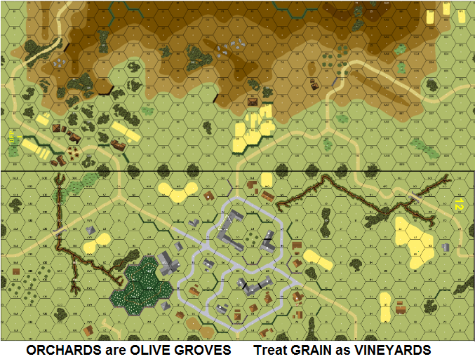 | Misc Rules: | Orchards: Olive Groves (B14.8), Grain: Vineyards (B12.7). D: 1 Sqd HIP |