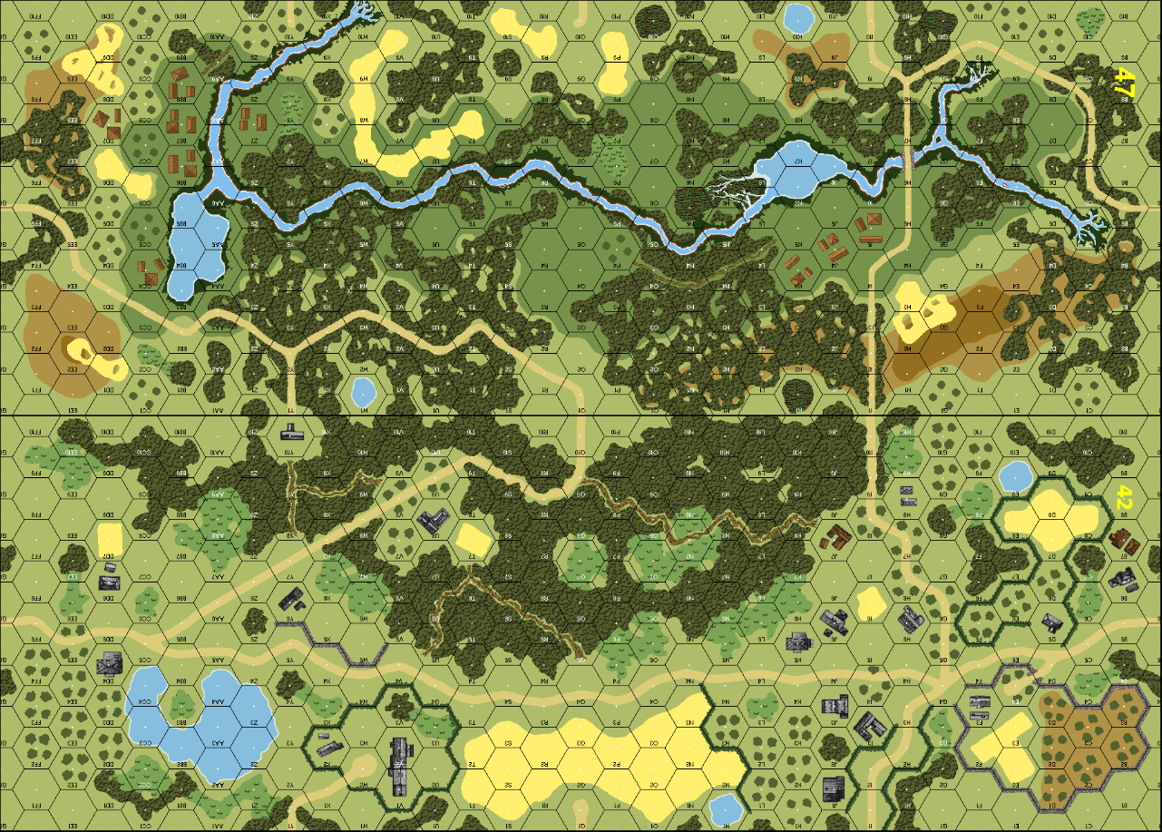 | Misc Rules: | Stream: Shallow. A: one PzIIF is OP tank (no MA) with observer for OBA |