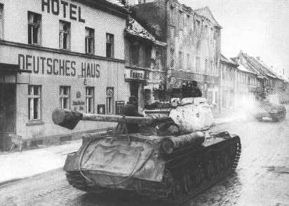 The troops fighting on the split of land called the Frische Nehrung were squeezed together more and more. Only Nickelswalde and Schienfenhorst were still in German hands. Feverish efforts were underway there to evacuate women and children to the west by boat. But there were 180,000 people on the Frische Nehrung and it would take a long time to get them all away. It was the job of Oberfeldwebel Hermann Bix and his Jagdpanthers to enable this giant escape action to succeed by defending the surrounding area. In the morning light of 6 May 1945, Bix saw through his binoculars the muzzle brake of a giant gun belonging to a Russian behemoth come crashing out of the trees in front of him. "Load armor-piercing! Range 400 meters, Fire!" Bix watched in amazement as each of the three 8.8cm shells that struck the behemoth appeared to have no effect. The Russians were now using their "Battering Rams" to force their way through the German blocking positions.Attacker: Russian (72nd Separated Guards Heavy Tank Regiment)