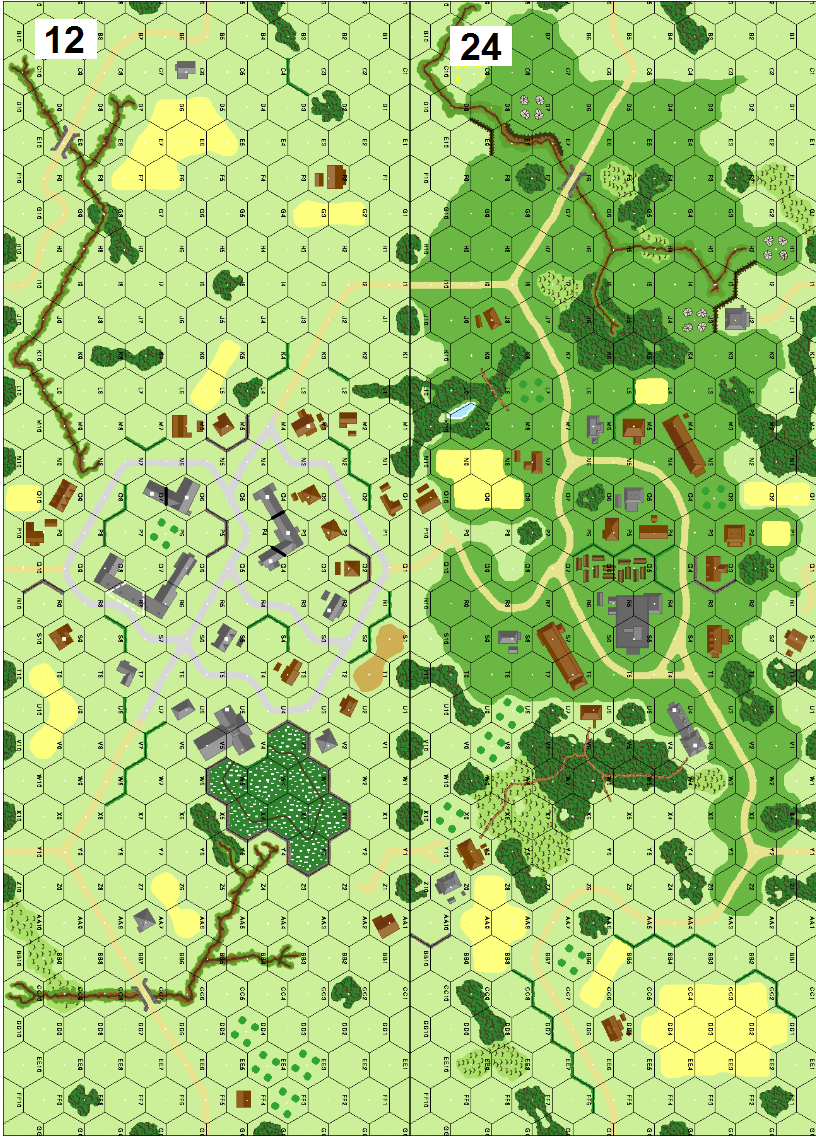 | Misc Rules: | All bldgs on Bd 12 are ground level only. DCs must be placed ON bridges |