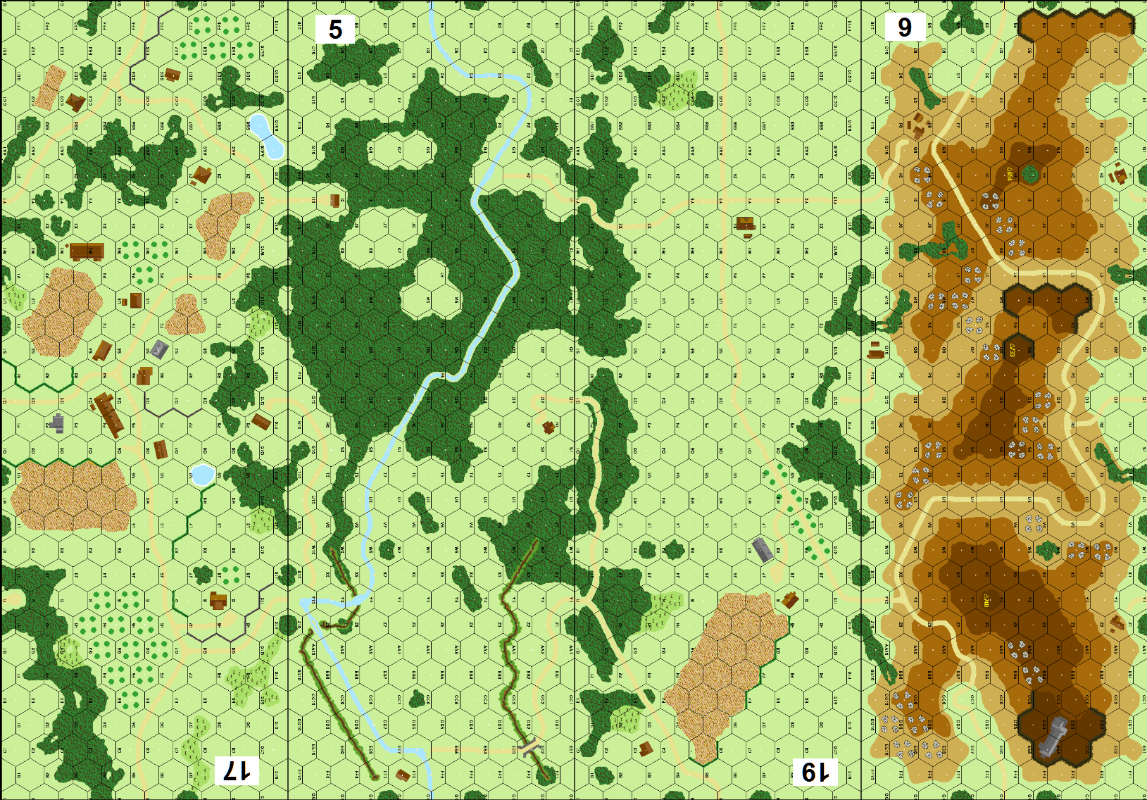 | Misc Rules: | Bd 5 road is stream. A: AS, Stealthy w D: Air Support, Tr2. AA guns captured use penalties |