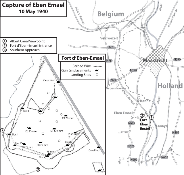 In early May 1940, the fortress of Eben Emael was a potent sentinel over the Belgian-Dutch borderlands. A ferro-concrete monster built in the 1930s on the Albert Canal, the fortress covered 75 hectares on the surface, had 5km of tunnels underground and was studded with bunkers, gun turrets and casemates. With a garrison of 1,200 men and the natural protection of 60m-high canal walls, and Eben Emael gave the impression of near-impregnability. On 10 May 1940, just 78 elite airborne soldiers of the German 7th Flieger Division (later renamed 1st Fallschirmjäger Division) managed to defeat the fortress in an operation of unprecedented tactical skill. Deployed by glider onto the very top of the fortifications, they utilized elite training, fast movement and specialist explosives to destroy many of the gun positions and trap much of the garrison within the fortress. Simultaneously, three other assault detachments conducted high-risk glider operations to capture critical bridges over the Albert Canal. By the end of 11 May, following the arrival of German infantry reinforcements, Eben Emael was in German hands.Attacker: German (Elements of Sturmgruppe "Granite", Para-Assault Battalion Koch)