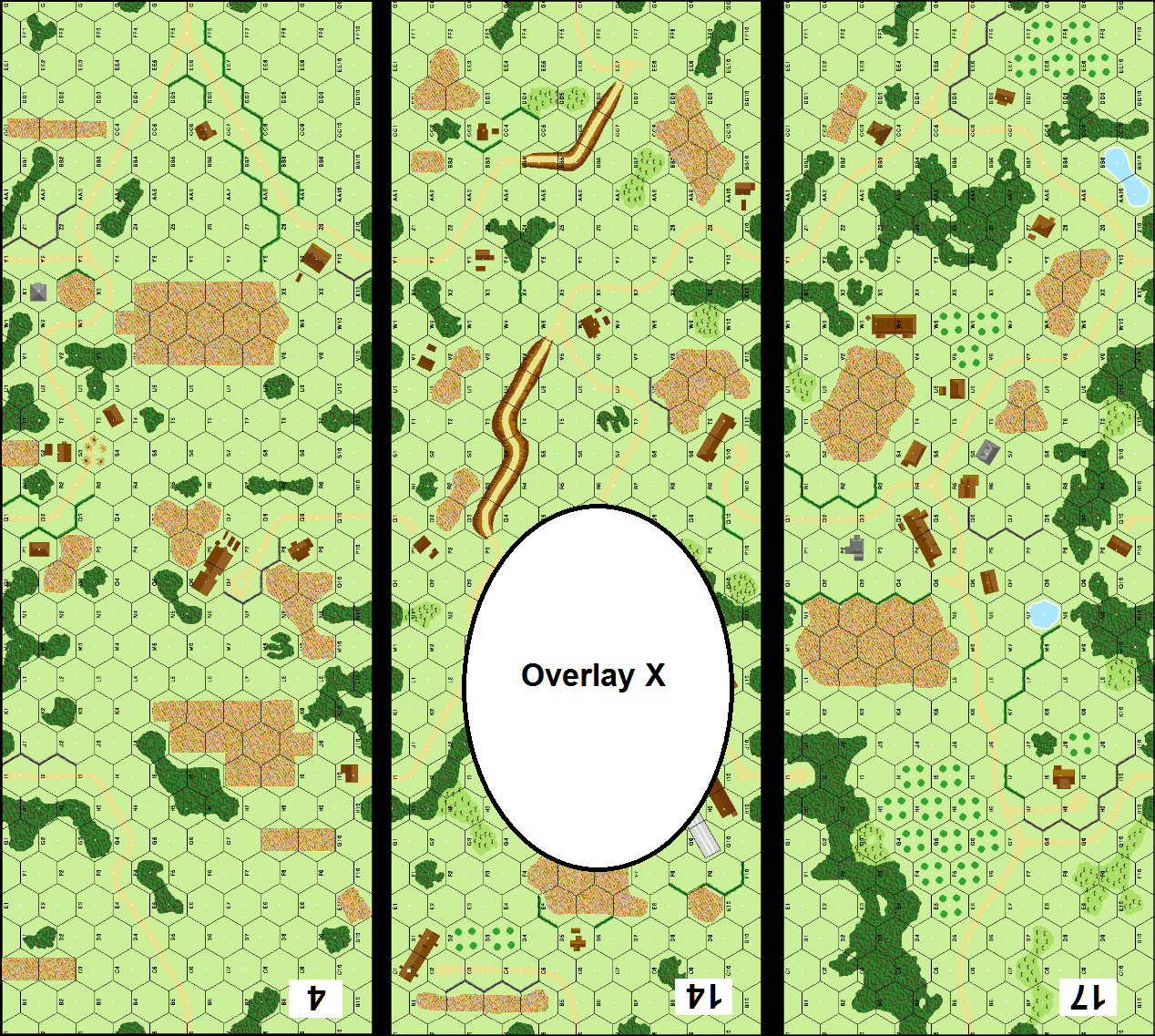 No overview listed. . . . . . . About the scenario: Forces split between the 3 boards. French at least 4 MMC per board; Germans at least 8 MMC per board. Germans travel east to west trying to exit 50 VPs. -20 VPs if unable to exit any off any mapboard.Attacker: German (Hoeppner's XVI Corps)