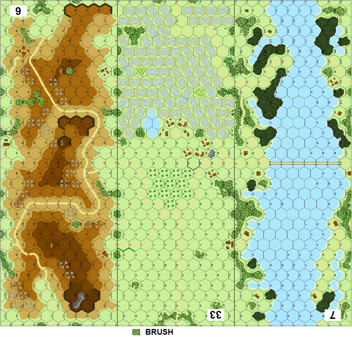 | Misc Rules: | Grain: Irrigated Rice Paddies (G8), Woods: Brush. A: DC may destroy bridge after Turn 4 |