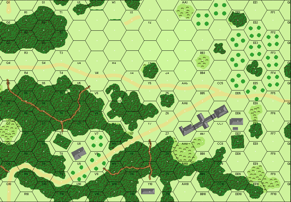 | Misc Rules: | GLRR (B32.1) parallels road Q4-GG6. Variable OB both sides. D: FB (B23.9) |