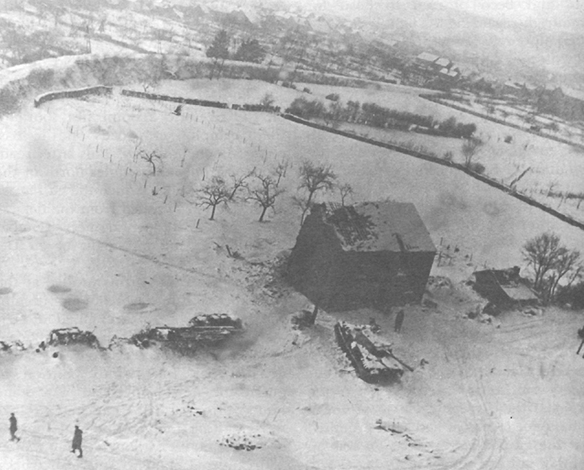 The 116th Panzer Division was moving to Marche to gain access to the roads leading to the Meuse. Once obstacle stood in the way -- the Ourthe river. General von Waldenburg sent a kampfgruppe of four Panther tanks and some panzergrenadiers to seize the vital crossing. An ad hoc American force of engineers, anti-aircraft guns and a tank undergoing repair stood in the way.Attacker: German (116th Panzer Division)