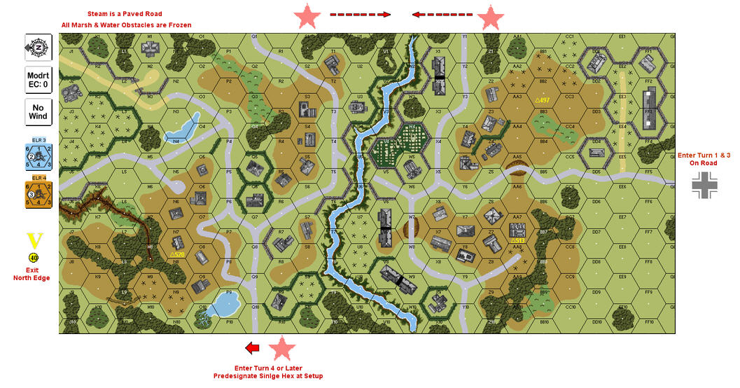 | Misc Rules: | Treat Stream as Paved Rd. D: AT Mines can only be laid in Paved Road hexes |
