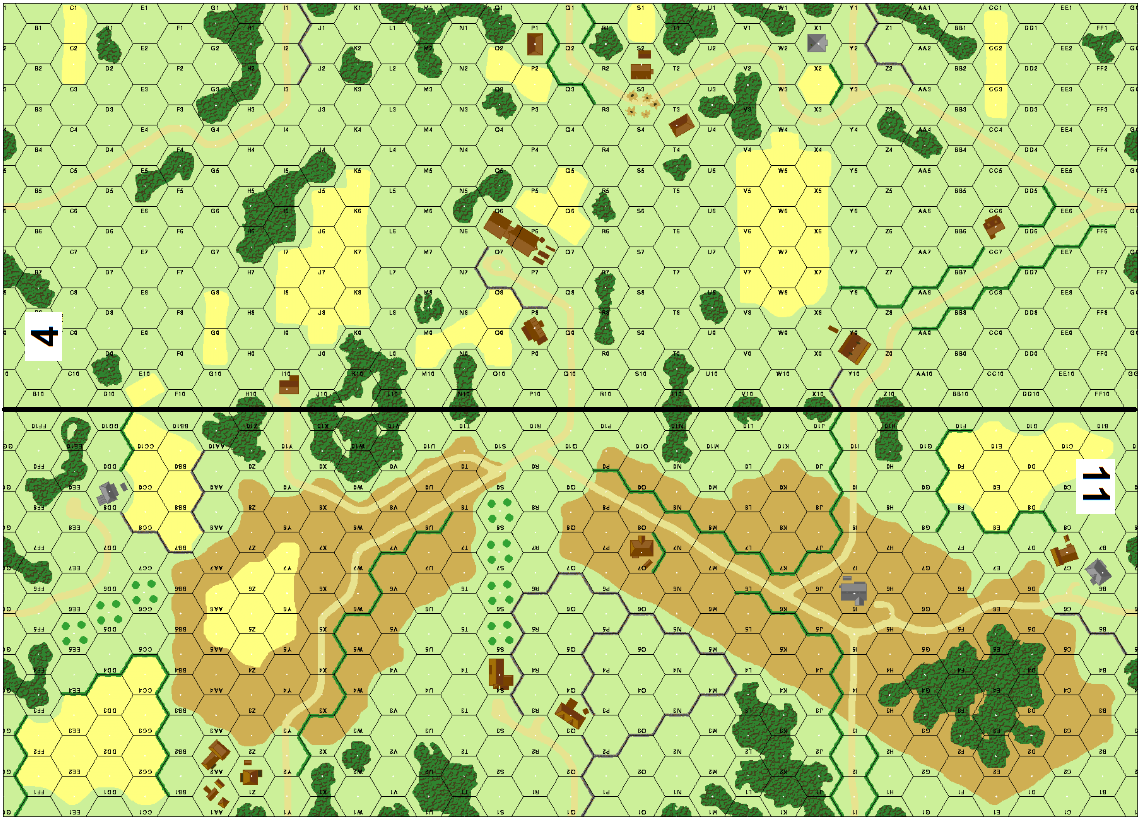 | Misc Rules: | Brit tanks must setup on hill hexes adj to level 0 hex; Hull Down status is automatic |