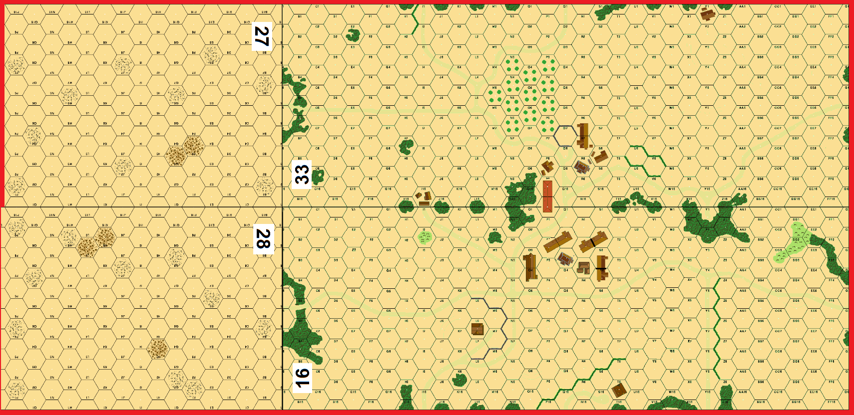 | Only hexrow A-P are playable on boards 27 & 28 ; add 1 SPW 251/1, 3 SPW 251/0 & 3 248 Hsquads to the turn 3 german reinforcments ; The SPW 250/SMG carries an inherent 248 Hsquad ; The turn 5 german reinforcments enter on board 16 beetween I10 and Q10 included. | Vae Victis 45 |