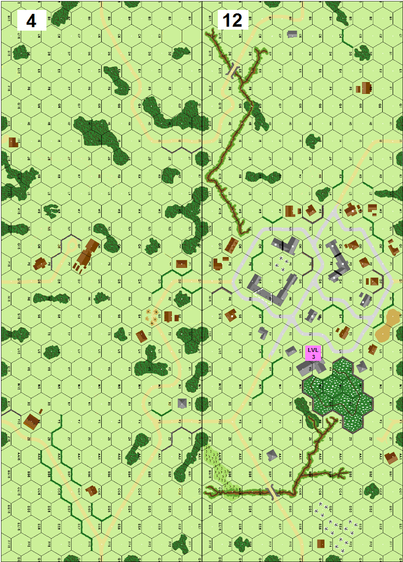 | Misc Rules: | No Smoke allowed. AFV movement costs double EXC on Paved Rds. Gullies are AT Ditches. D: FB3 |