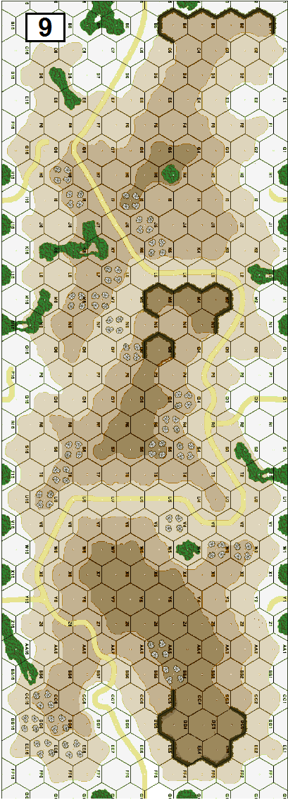 | Misc Rules: | GS (E3.72), No buildings, Treat level 4 hills as Level 3. Cliffs exist. D: Pillboxes are VC targets |